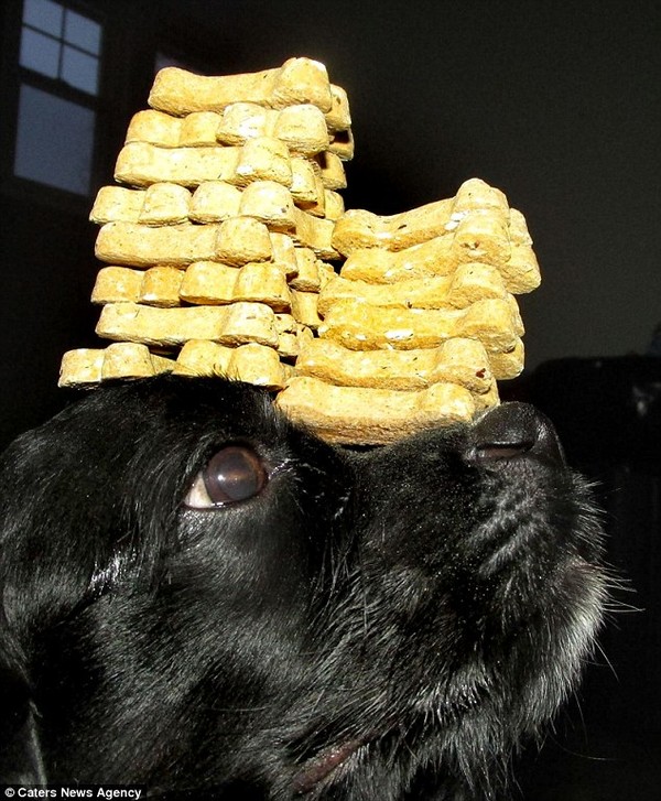 Cô chó Bella sở hữu khả năng thăng bằng đồ vật tài tình.